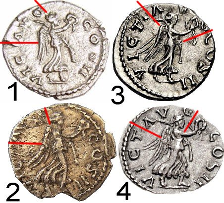 Aber noch sind nicht alle Meinungen gehört, mir ist natürlich klar, das kein Fachmann Aufgrund eines Fotos gleich eine neue RIC -Nummer aufrufen wird. Aber je mehr diese Münze im Internet sehen, umso mehr besteht die Möglichkeit, dass vielleicht weitere Münzen mit fehlenden T in anderen Sammlungen auftauchen, die bis jetzt einfach übersehen wurden. Es wird zwar nicht, gegen alle Meinungen, zu beweisen sein, ob der Stempel fehlerhaft oder das T bei VICT gar nicht vorhanden war, aber Aufgrund der Münzbilder und der Stellung der Legende könnte man Gemeinsamkeiten finden.