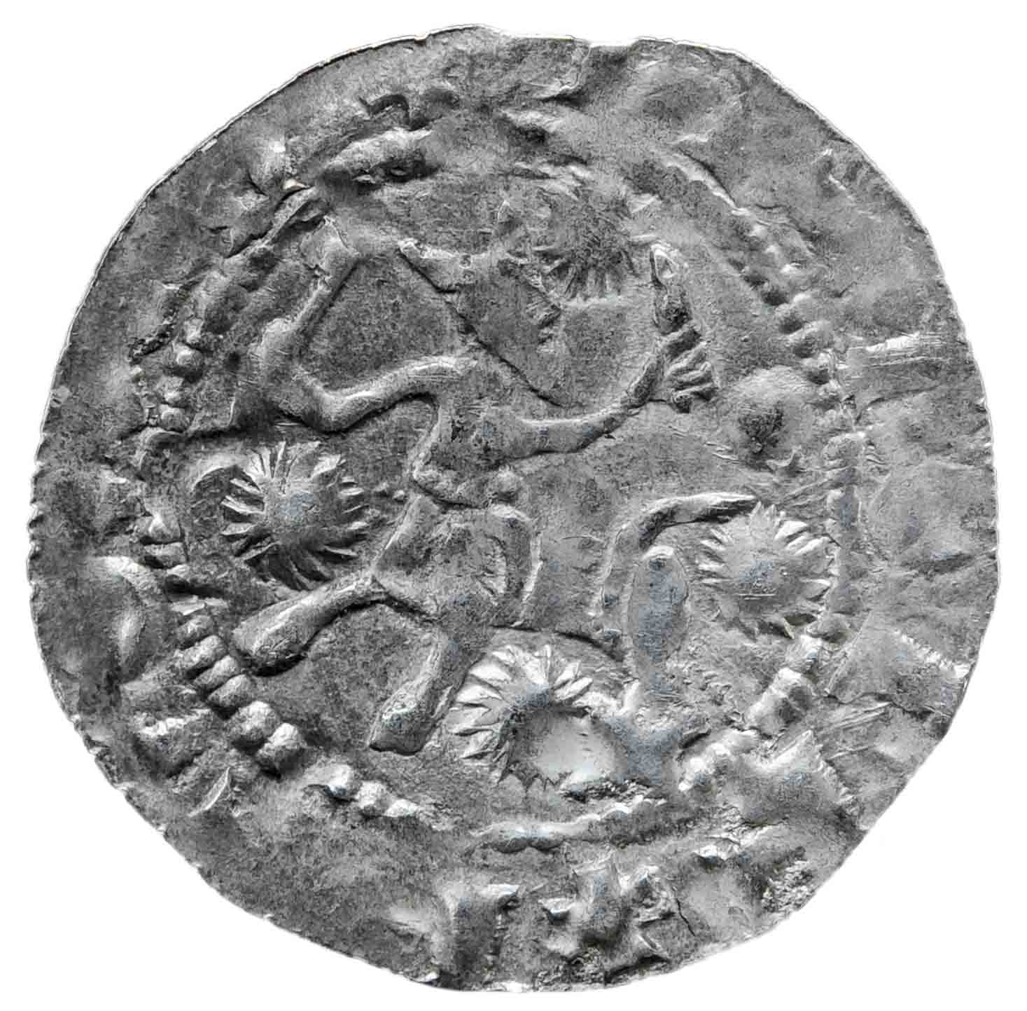 Von beiden neulich versteigerten B35 zeigte das nun vorgestellte Stück die deutlichere Prägung. Besonders schön erkennbar ist der Kentaur am Revers der Münze. Zusätzlich zu den von Koch erwähnten "vier Sternen im Feld" trägt diese Variante noch eine Kugel als Beizeichen, oberhalb des Schwanzes der Fabelkreatur.