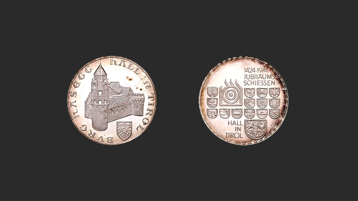 Die Schützen Gilde Hall in Tirol von 1424 hat zur 550 Jahrfeier im Jahre 1974 ein Jubiläumsschießen veranstaltet. Dazu wurden als Preise u. a. Gold-, Silber-, und Bronzemedaillen von der Ausbeute der Bergbauhütte Brixlegg in Tirol geprägt und vergeben.