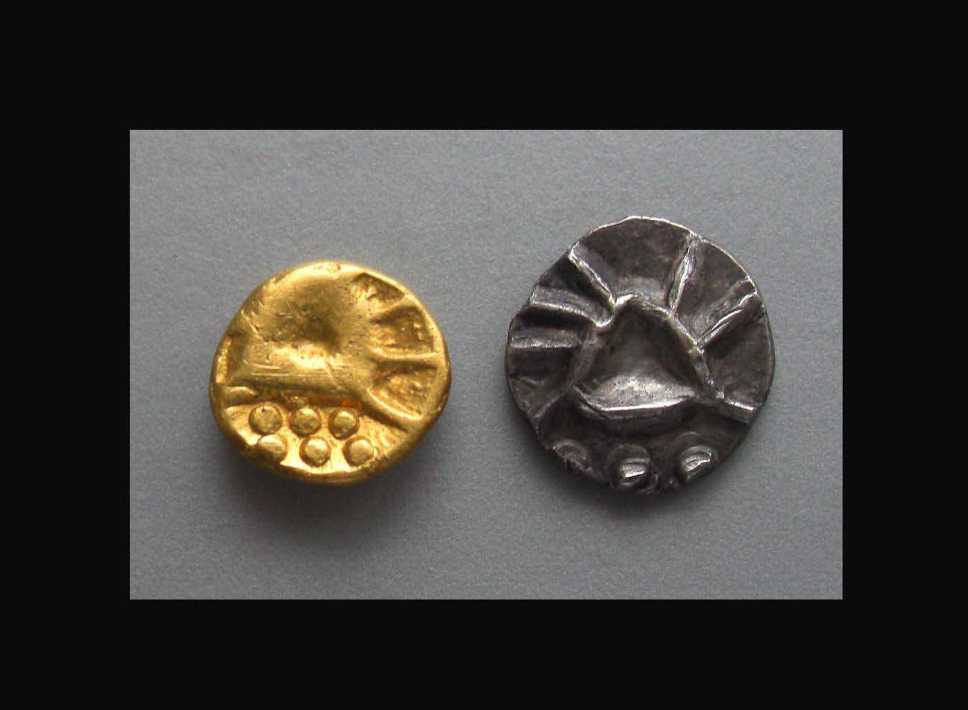 Diese Münzen sind der Nachweis, dass in derselben Prägestätte sowohl boisches Kleinsilber, als auch goldene Teilstücke des Muschelstaters zeitgleich ausgebracht wurden.