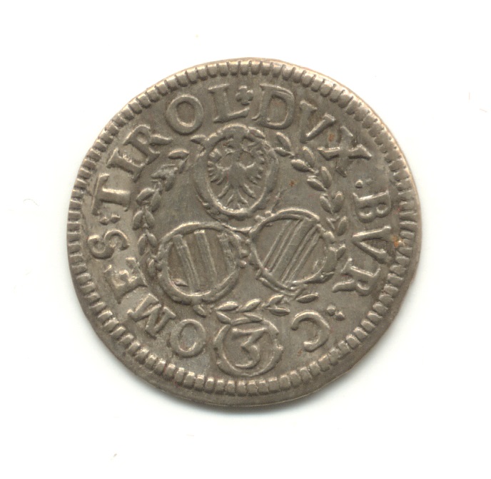 Groschen mit geistlichem Bild:Diese zeigen auf der Vorderseite das geistliche Bildnis des Erzherzogs nach rechts; auf der Rückseite in Kleeblattstellung die Wappenschilde von Tirol, Österreich und Burgund. Sämtliche Stücke sind undatiert.
