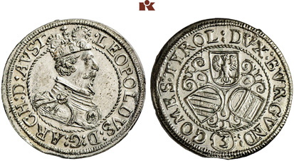 Die 9 Mio. an Groschen aus landesfürstlicher Zeit stimmen mit Moser/Tursky überein. Zeitraum allerdings von 1626 bis Beginn 1638, also mit den posthumen Prägungen unter Claudia von Medici ab 1632 (hier springt vor allem das Jahr 1637 mit ca. 4 Mio. hervor).