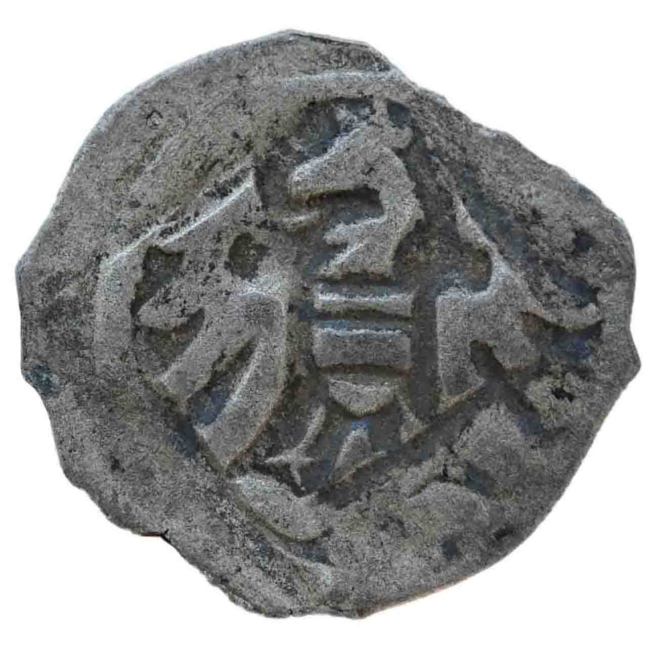 es liegt mir hier ein einseitiger Vierschlag-Hälbling mit einem Adler vor, der Kopf sieht nach links. Die Rückseite ist vollkommen blank, ohne jegliche Prägespuren. Der Vierschlag auf der Motivseite. Würde das Stück ins 15. Jahrhundert stellen.