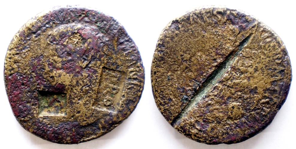 wirklich sensationelles Stück und trotzalledem relativ gut erhalten. Einen "Drusus" mit zwei Gegenstempeln findet man nicht alle Tage. Der Einhieb auf der Rückseite dürfte übrigens auf einen vergeblichen Versuch, die Münze zu halbieren (Kleingeldmangel am Limes) zurückzuführen sein. "PRO" dürfte ebenso wie "PROB" mit "PROBATVS - Geprüft" zu deuten sein. Den 2. Stempel würde ich allerdings eher mit "AVG" in Verbindung bringen, wobei A und V als Ligatur ausgeführt wurden.
