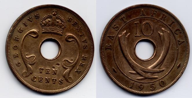 mir ist gerade eine 10 Cent-Münze 1950 aus East Africa unter die Finger gekomme. Ich will sie Euch hier einmal vorstellen :D