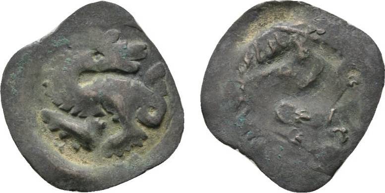 Bei jenen von dir gezeigten Stücken handelt es sich um einen Pfennig, der mir auch sehr ans Herz gewachsen ist. So sehr, dass ich in gleich in doppelter Ausführung habe, sowohl als B188 ohne Krone, der Rudolf von Habsburg (1276-1282) zugeordnet wird, als auch als mit Krone, den man der Münzstätte Eger zuschreibt.